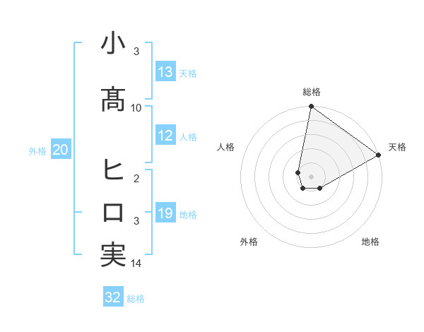 小髙 ヒロ実さんの天格は13画の5点!