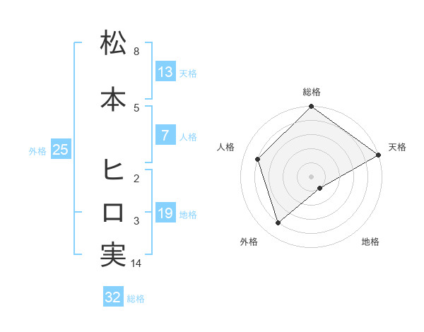 松本 ヒロ実さんの天格は13画の5点!