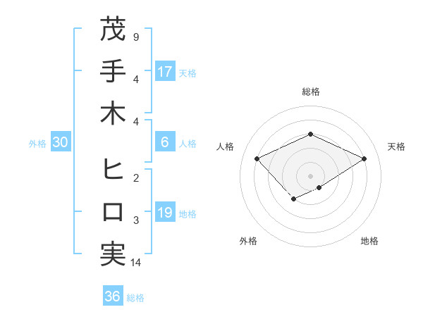 茂手木 ヒロ実さんを姓名の画数から五運を鑑定