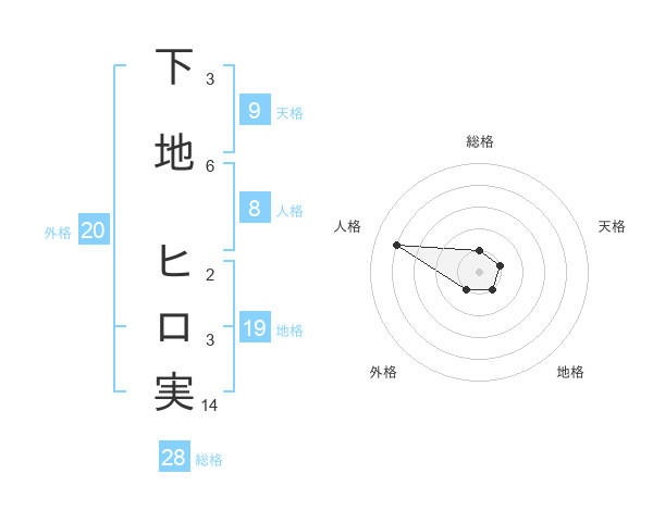 下地 ヒロ実さんを姓名の画数から五運を鑑定