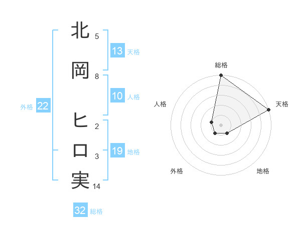 北岡 ヒロ実さんの天格は13画の5点!