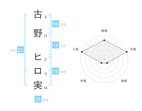 古野 ヒロ実さんを姓名の画数から五運を鑑定
