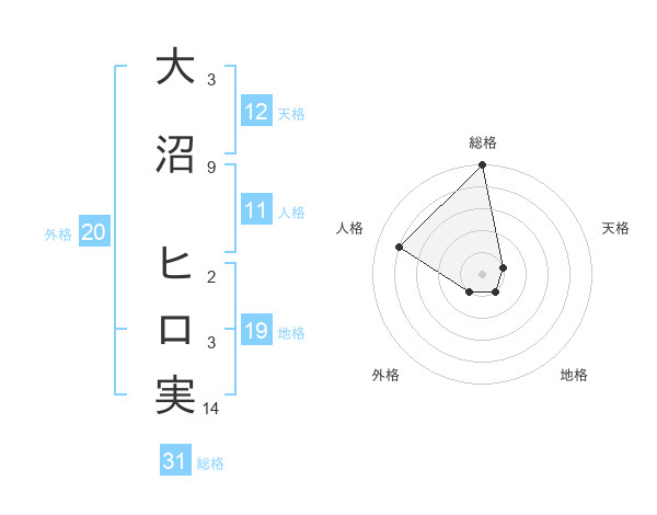 大沼 ヒロ実さんを姓名の画数から五運を鑑定