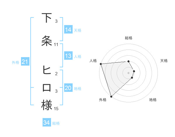 下条 ヒロ様さんの天格は14画の1点!