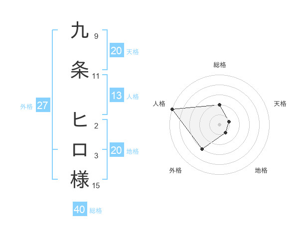 九条 ヒロ様さんを姓名の画数から五運を鑑定