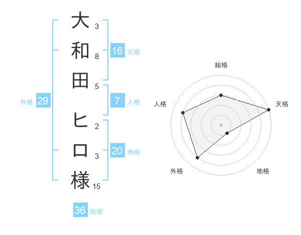 大和田 ヒロ様さんを姓名の画数から五運を鑑定