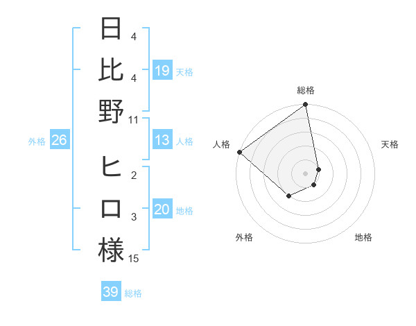 日比野 ヒロ様さんを姓名の画数から五運を鑑定