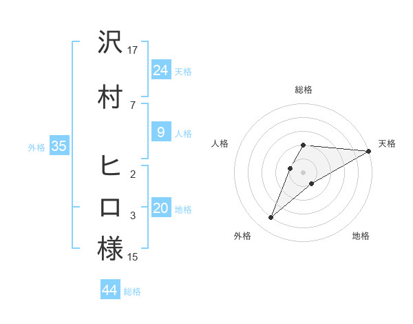 沢村 ヒロ様さんを姓名の画数から五運を鑑定
