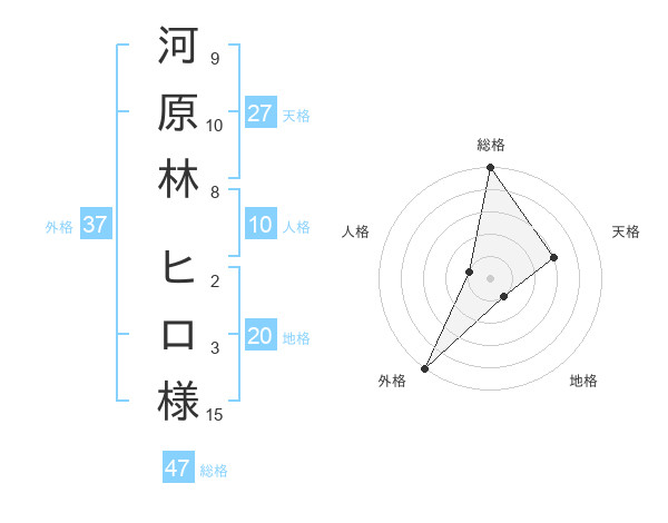 河原林 ヒロ様さんを姓名の画数から五運を鑑定