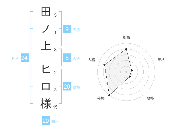 田ノ上 ヒロ様さんの総格は29画の4点!