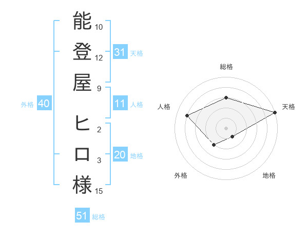 能登屋 ヒロ様さんを姓名の画数から五運を鑑定
