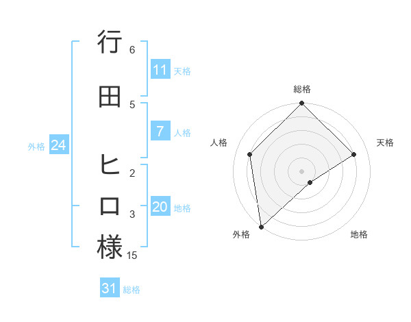 行田 ヒロ様さんの総格は31画の5点!