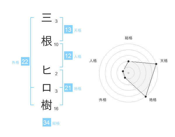 三根 ヒロ樹さんを姓名の画数から五運を鑑定