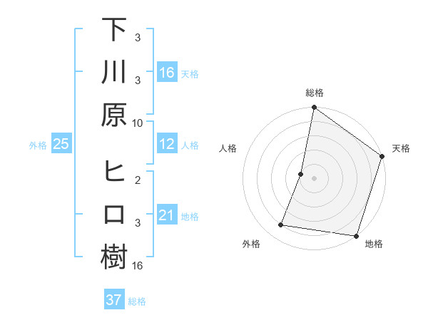 下川原 ヒロ樹さんを姓名の画数から五運を鑑定