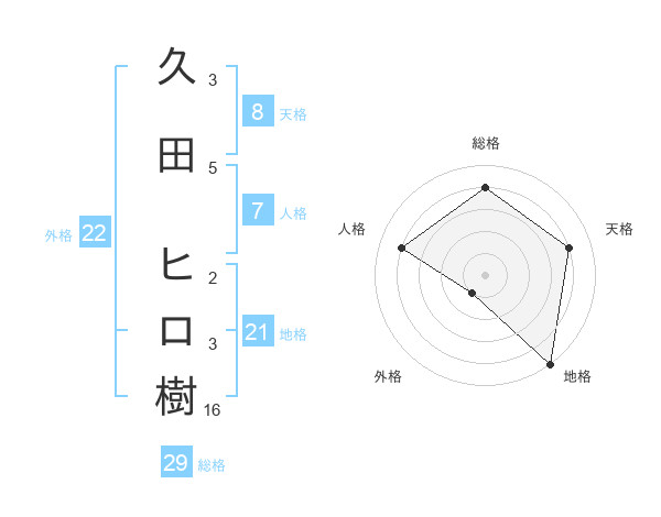 久田 ヒロ樹さんを姓名の画数から五運を鑑定