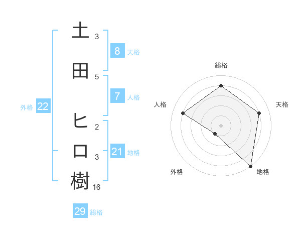 土田 ヒロ樹さんを姓名の画数から五運を鑑定