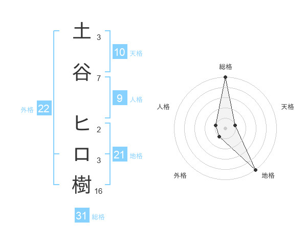 土谷 ヒロ樹さんを姓名の画数から五運を鑑定