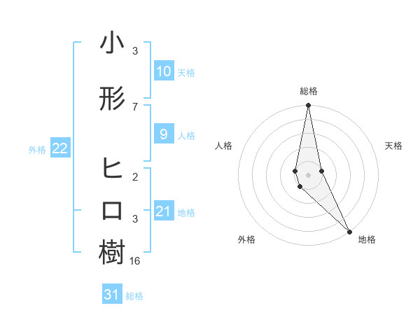 小形 ヒロ樹さんを姓名の画数から五運を鑑定