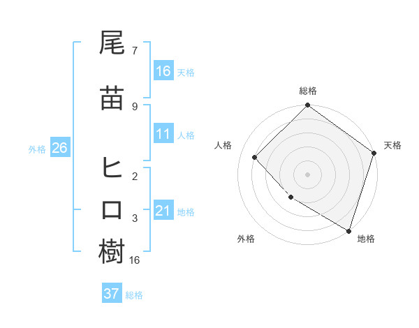 尾苗 ヒロ樹さんの総格は37画の5点!