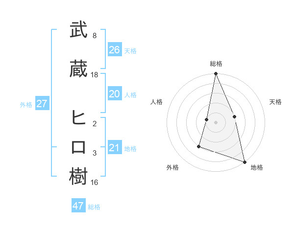 武蔵 ヒロ樹さんの総格は47画の5点!