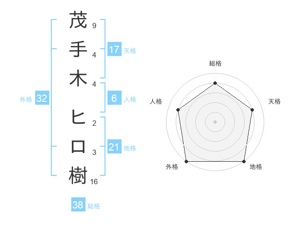 茂手木 ヒロ樹さんの総格は38画の4点!