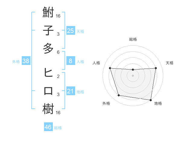 鮒子多 ヒロ樹さんの外格は38画の4点!