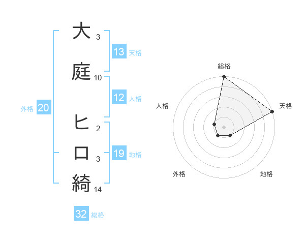大庭 ヒロ綺さんを姓名の画数から五運を鑑定