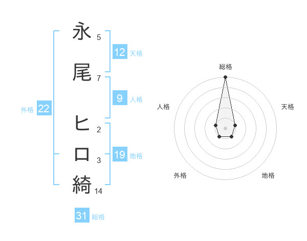 永尾 ヒロ綺さんを姓名の画数から五運を鑑定