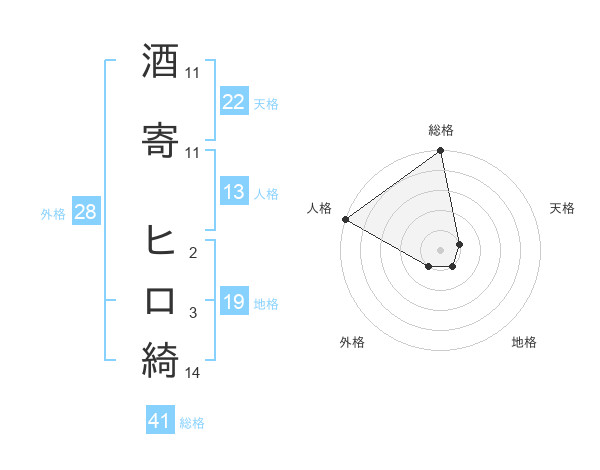 酒寄 ヒロ綺さんの総格は41画の5点!