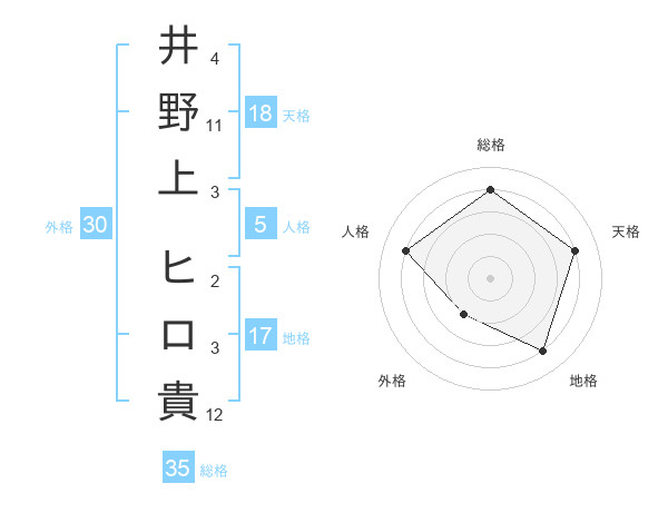井野上 ヒロ貴さんを姓名の画数から五運を鑑定