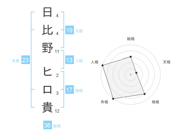 日比野 ヒロ貴さんの地格は17画の4点!