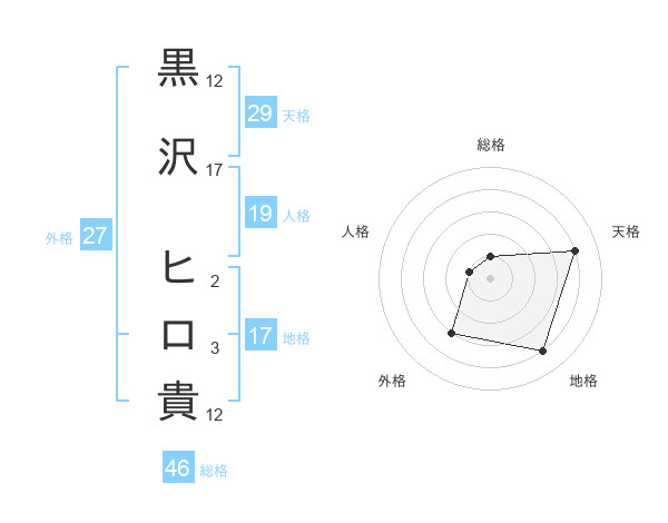 黒沢 ヒロ貴さんの天格は29画の4点!