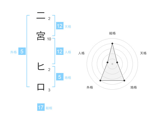 二宮 ヒロさんの天格は12画の1点!