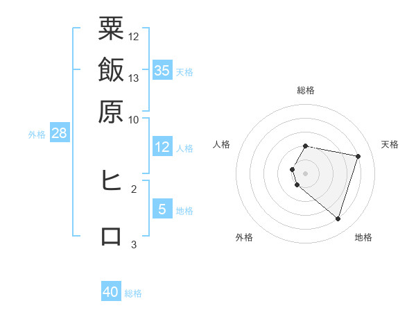 粟飯原 ヒロさんの天格は35画の4点!