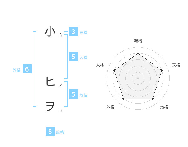 小 ヒヲさんを姓名の画数から五運を鑑定