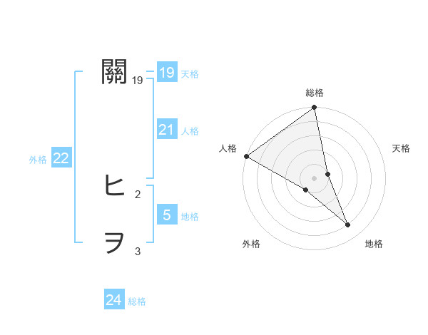 關 ヒヲさんの外格は22画の1点!