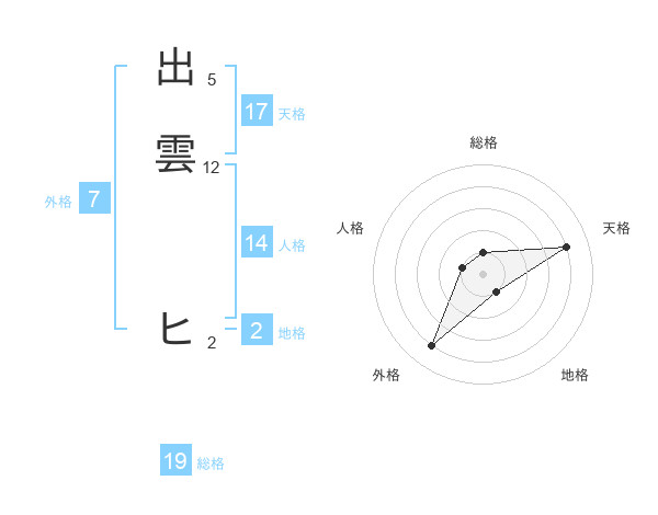 出雲 ヒさんの天格は17画の4点!