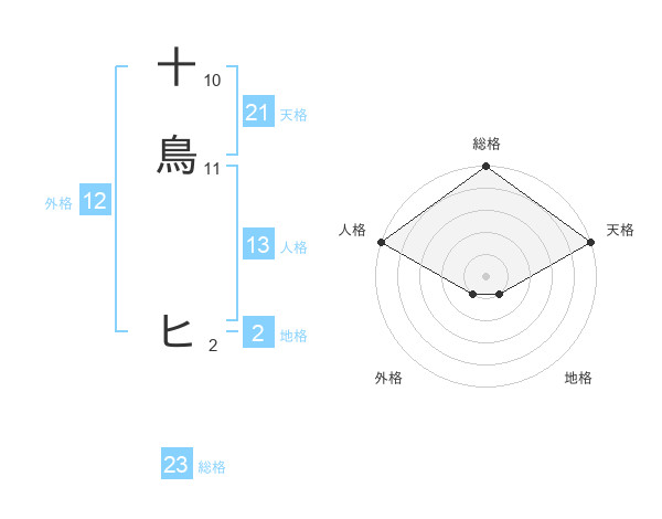 十鳥 ヒさんを姓名の画数から五運を鑑定