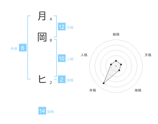 月岡 ヒさんを姓名の画数から五運を鑑定