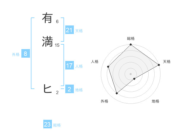 有満 ヒさんの天格は21画の5点!