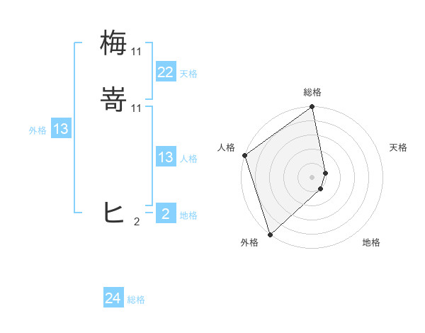 梅嵜 ヒさんを姓名の画数から五運を鑑定