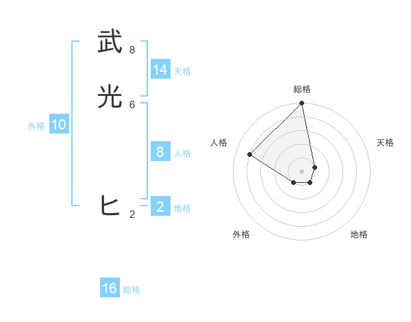武光 ヒさんの総格は16画の5点!