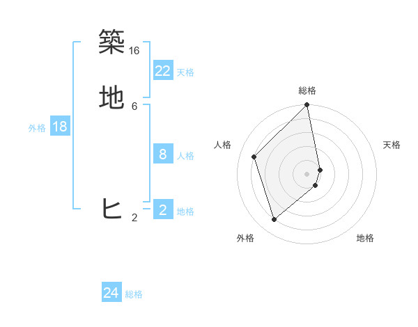 築地 ヒさんの天格は22画の1点!