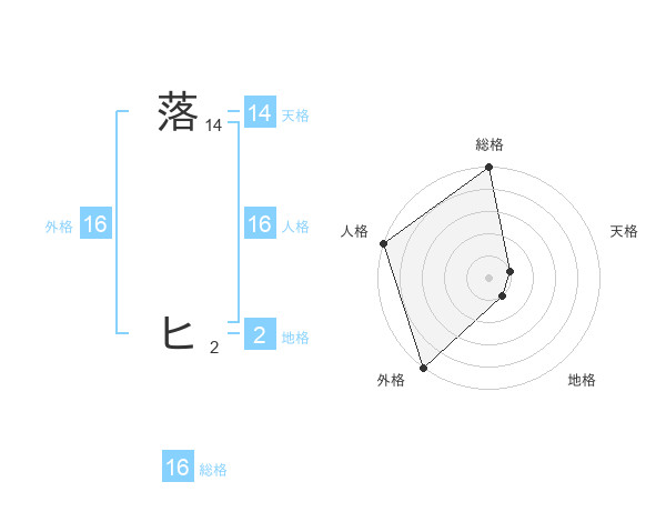 落 ヒさんの外格は16画の5点!
