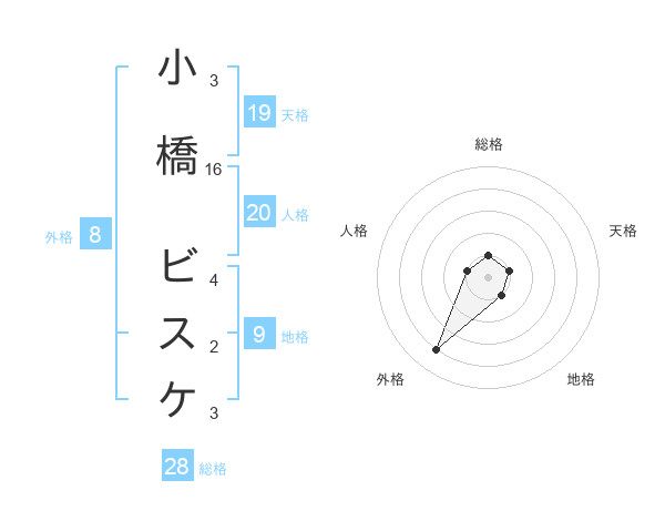小橋 ビスケさんを姓名の画数から五運を鑑定