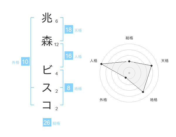 兆森 ビスコさんの天格は18画の4点!