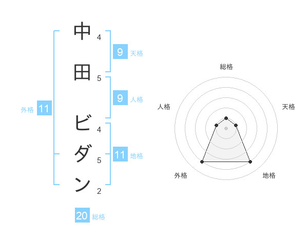 中田 ビダンさんを姓名の画数から五運を鑑定
