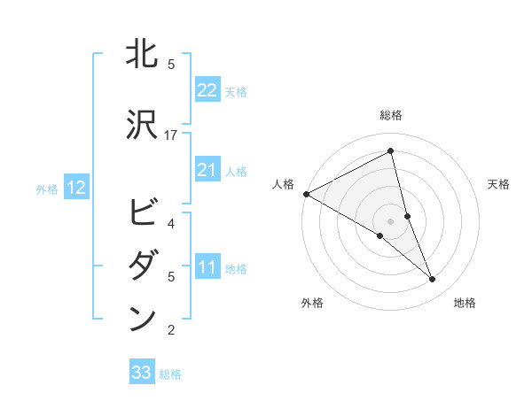 北沢 ビダンさんを姓名の画数から五運を鑑定