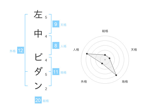左中 ビダンさんの総格は20画の1点!