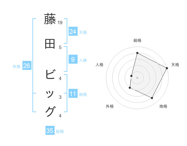 藤田 ビッグさんの総格は35画の4点!